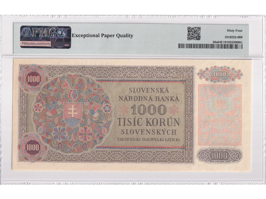 1000 Ks 1940 (1945) SPECIMEN S KOLKEM, certifikace PMG