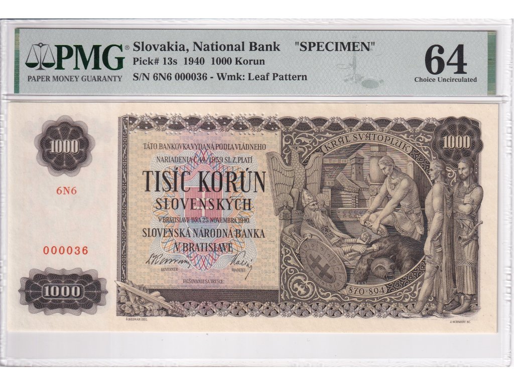 1000 Ks 1940 SPECIMEN, certifikace PMG
