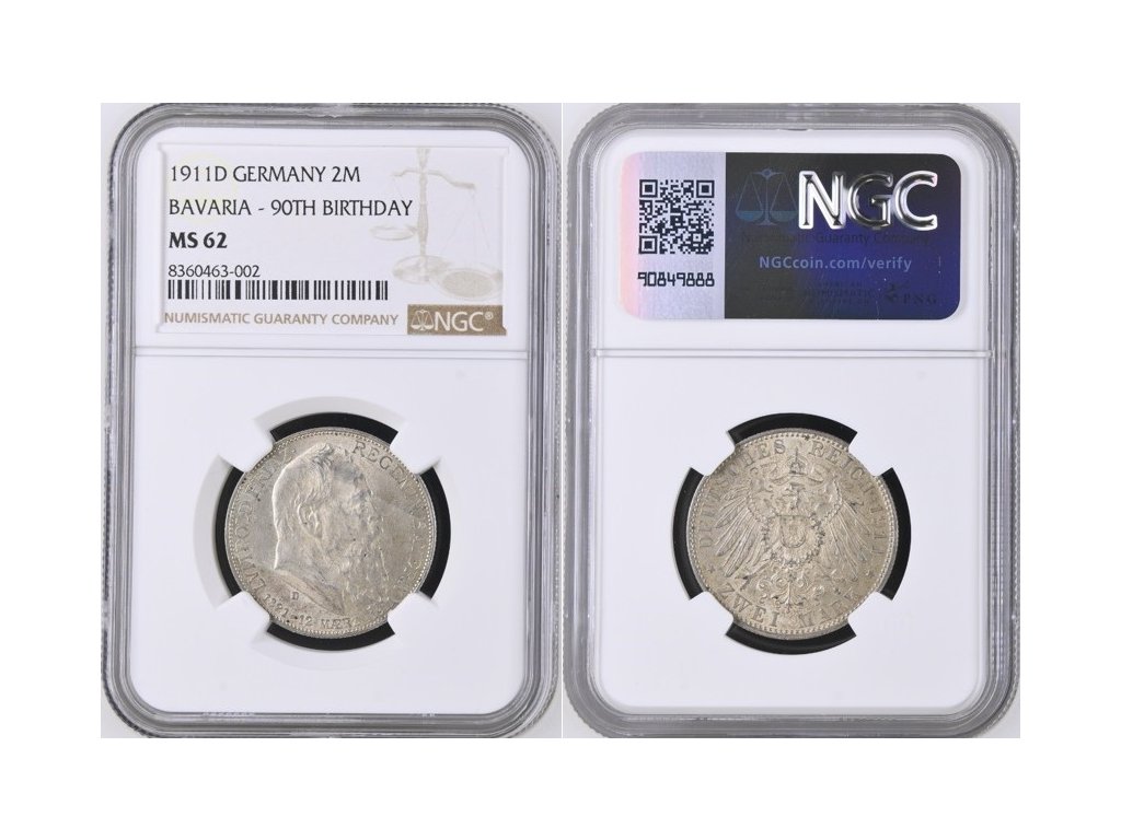 2 MARKA 1911 D OTTO (1886-1913) BAVORSKO (BAYERN), certifikace NGC