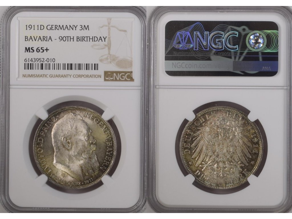 3 MARKA 1911 D OTTO (1886-1913) BAVORSKO (BAYERN), certifikace NGC