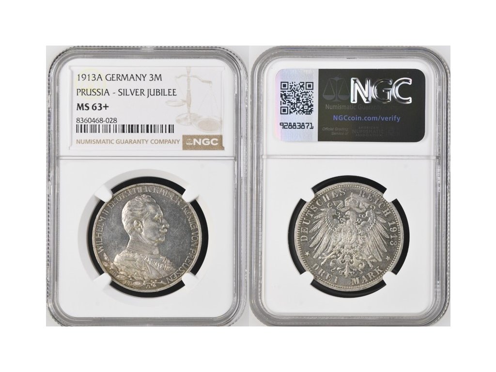 3 MARKA 1913 A, Wilhelm II. (1888-1918), certifikace NGC