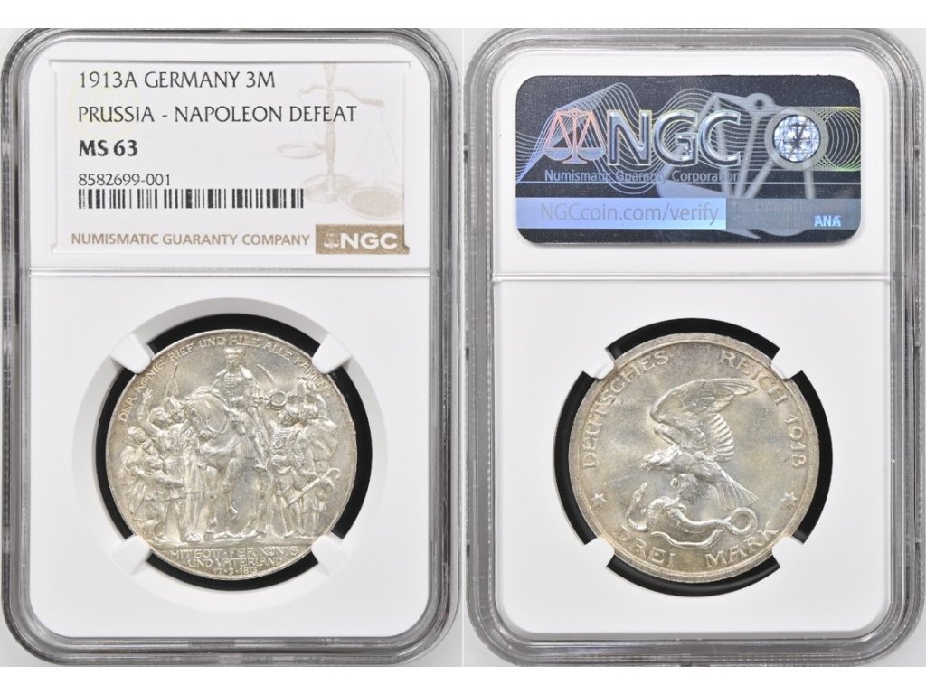 3 MARKA 1913 A, Wilhelm II. (1888-1918), certifikace NGC