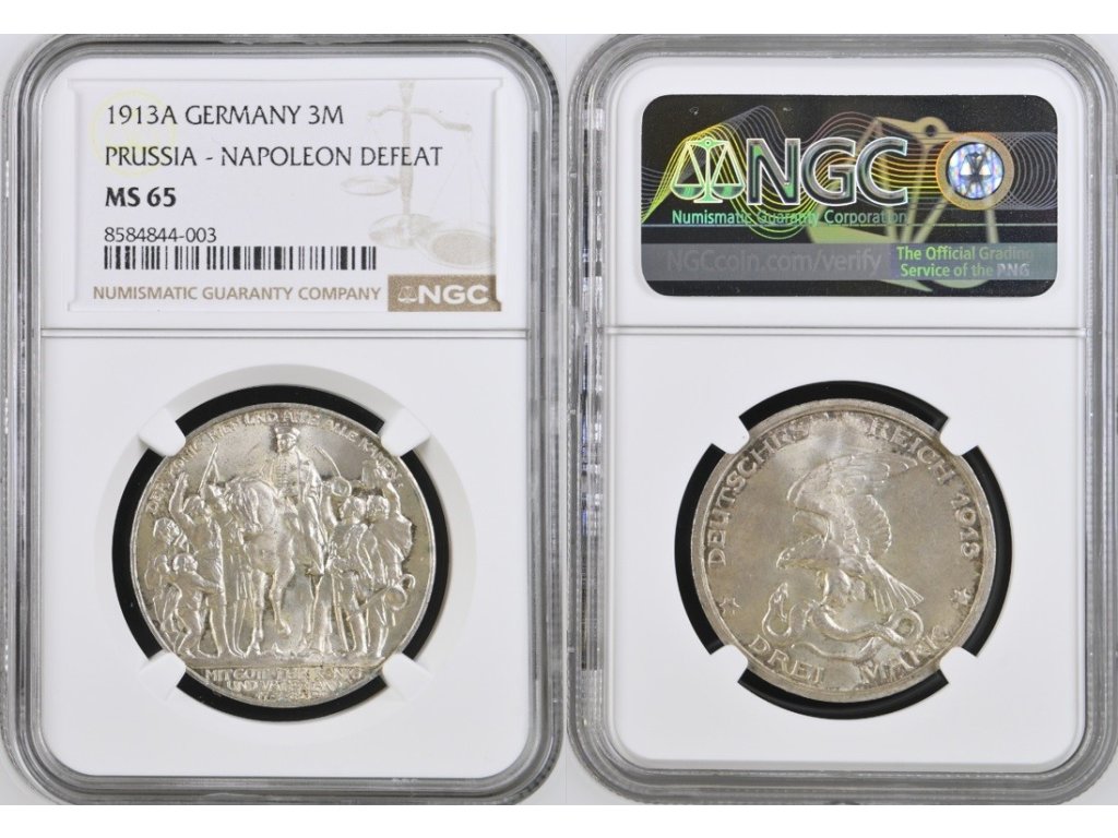 3 MARKA 1913 A, Wilhelm II. (1888-1918), certifikace NGC