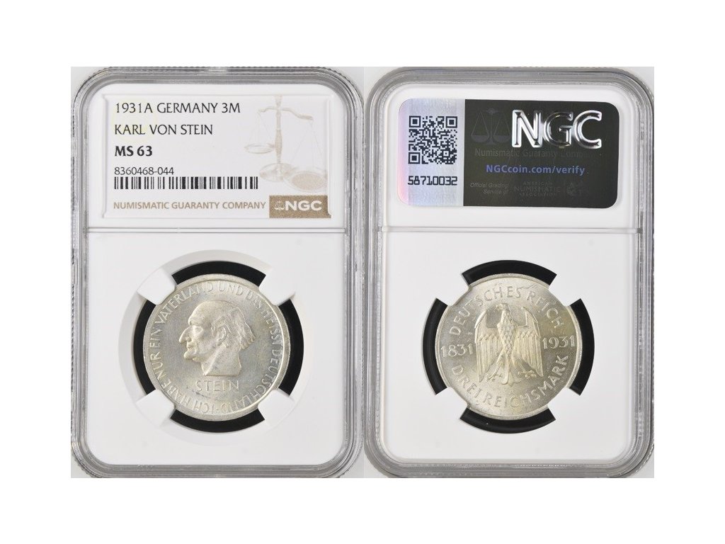 3 MARKA 1931 A VÝMARSKÁ REPUBLKA (WEIMARER REPUBLIK), certifikace NGC