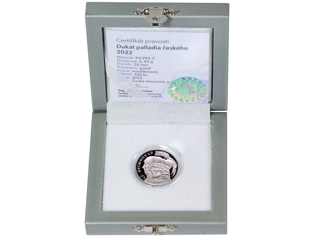 Dukát palladia českého (kov palladium) - medaile ve váze 1 dukátu, etuje, certifikát