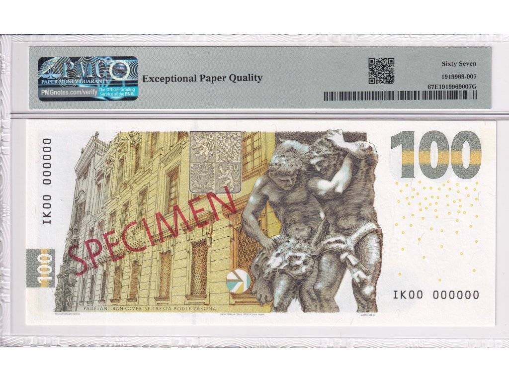 100 Korun 2022 Orlice pamětní SPECIMEN (v prostřední části bankovky) K. Englis, PMG Certification