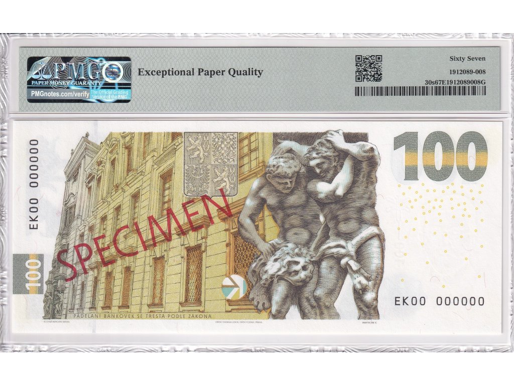 100 Korun 2022 pamětní SPECIMEN (v prostřední části bankovky) K. Englis, PMG Certification