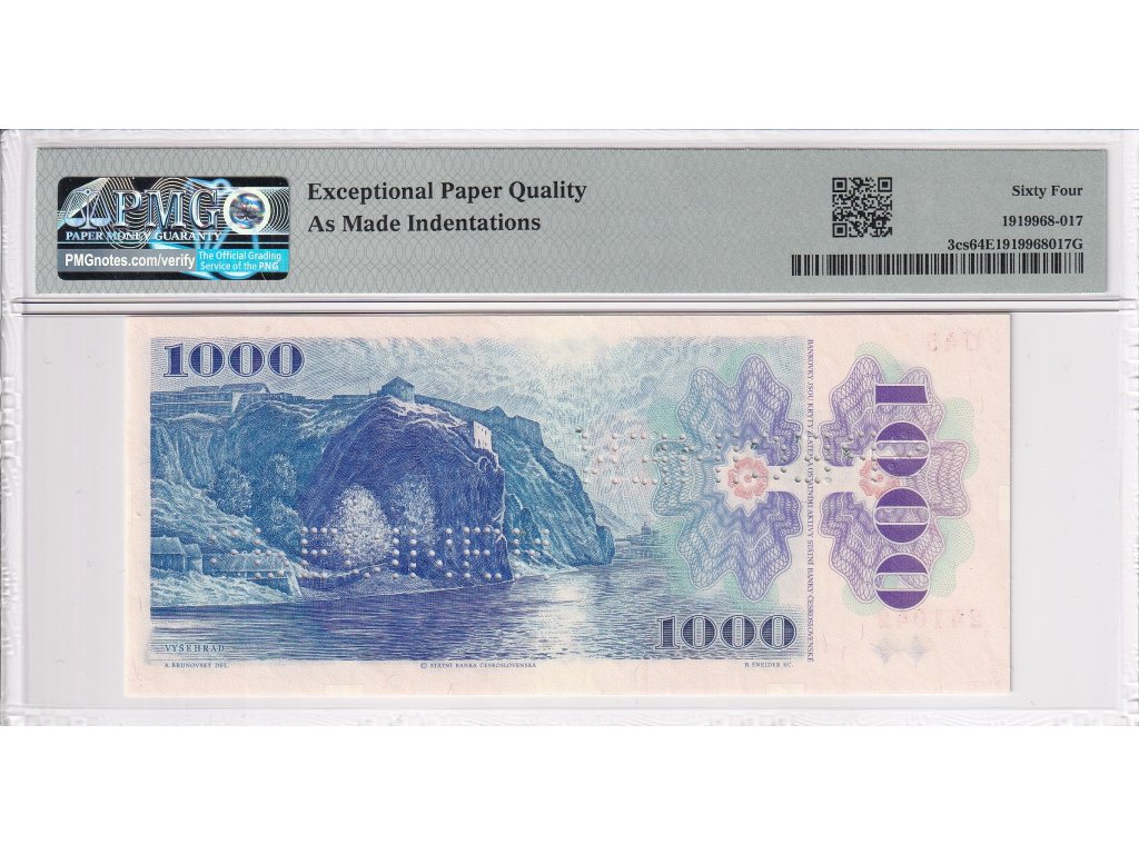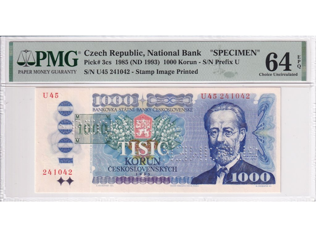 1000 Korun 1985 přetisk 1993 2x SPECIMEN (v horní a dolní části bankovky), PMG Certification