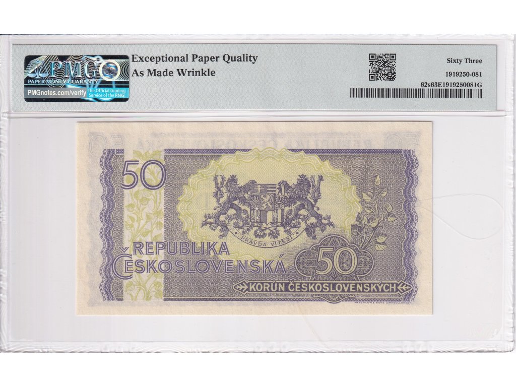 50 Kčs 1945 SPECIMEN (in the middle of the banknote), PMG Certification