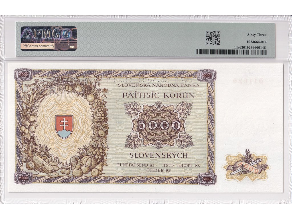 5000 Ks 1944 nevydaná SPECIMEN (v horní části bankovky)