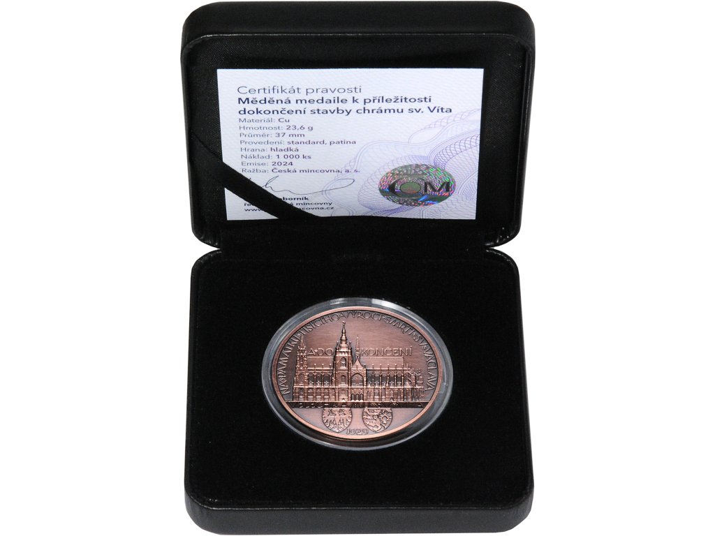Měděná medaile Dokončení stavby Chrámu sv. Víta malá, etuje, certifikát