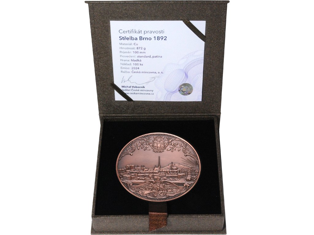 František Josef I. Měděná medaile Střelba Brno 1892/2024, etuje, certifikát