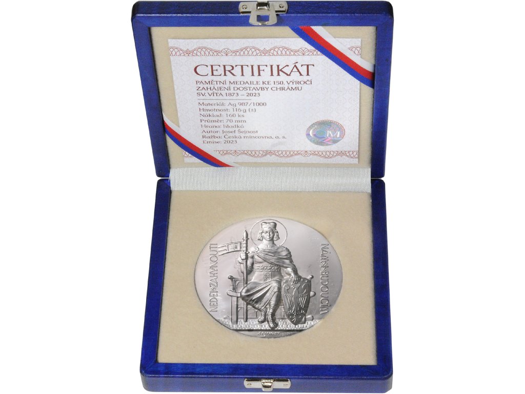 Stříbrná pamětní medaile ke 150. výročí zahájení dostavby Chrámu sv. Víta 1873-2023, novoražba, etuje, certifikát